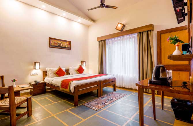 The Corbett Wild Resort & Jungle Lodge Resort is a unique indigenously styled luxury eco-resort spread over more than four acres of grasslands, bamboo thickets and generously canopied trees with adjoining river Kosi and Ramnagar division forest with a delightful jungle ambience.